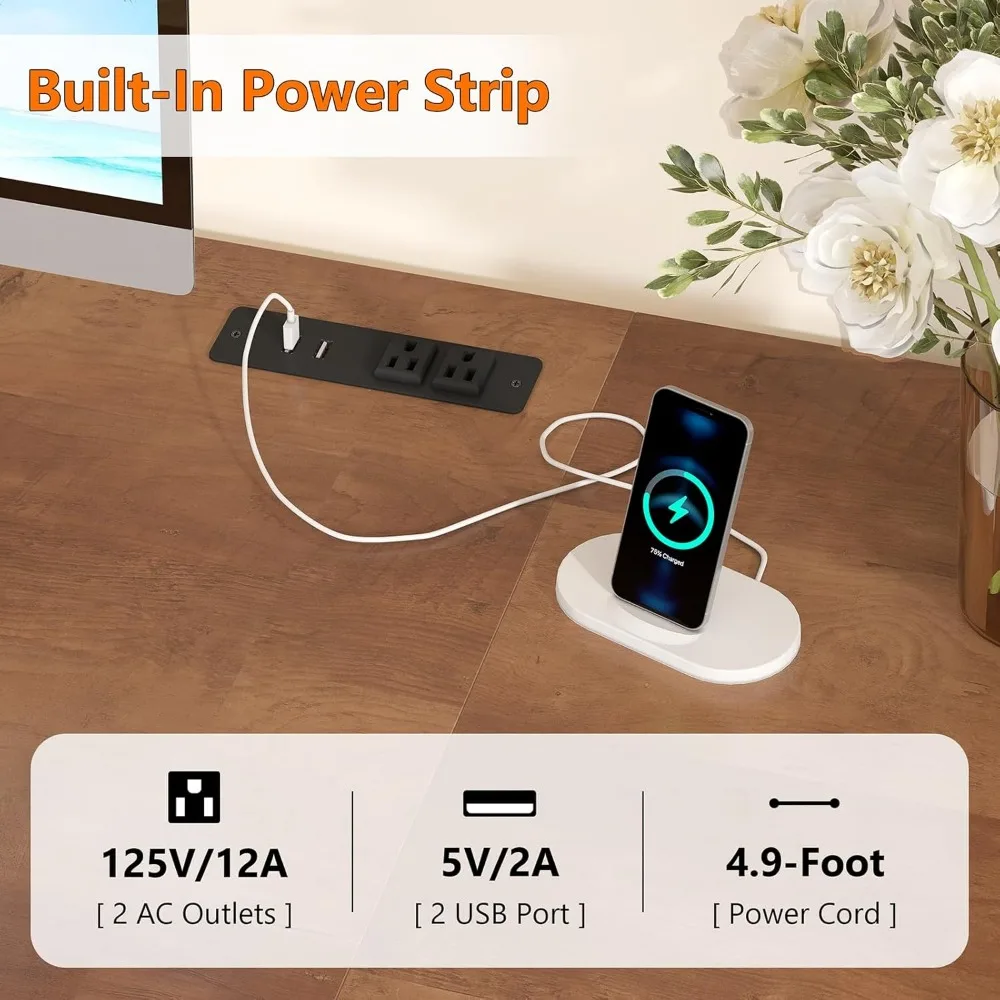 - INTEGRATED POWER STRIP: The computer desk with 8 drawers is equipped with integrated power strip, including 2 USB port and 2 built-in AC outlets, which provides power support for your computer, tablet and phone and keeps your gaming equipment always powered up