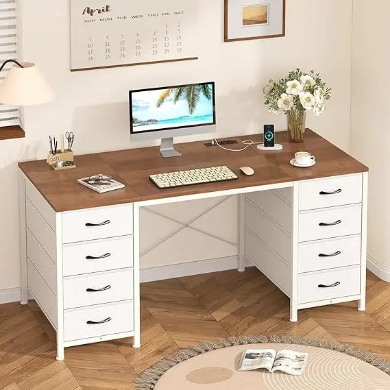 - MULTIPLE USAGE: This desk features a solid wood desktop, 8 fabric drawers, and ample legroom, blending seamlessly into any room, upgrading your work, study space. The brown wood grain top and white body add a touch of elegance, making this desk ideal for a home office or gaming station