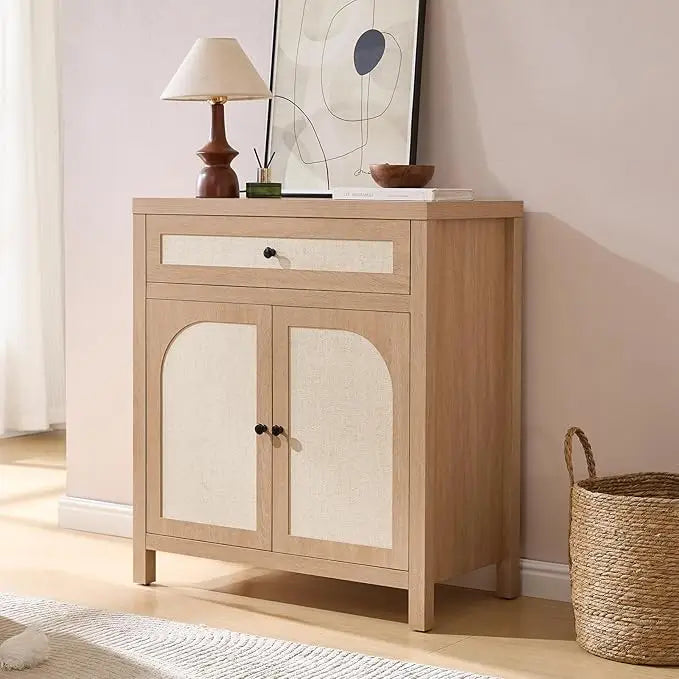 【Eco-Friendly Sideboard】FSC-certified rattan accent cabinet with easy assembly. Includes numbered parts & foam protection for safe delivery