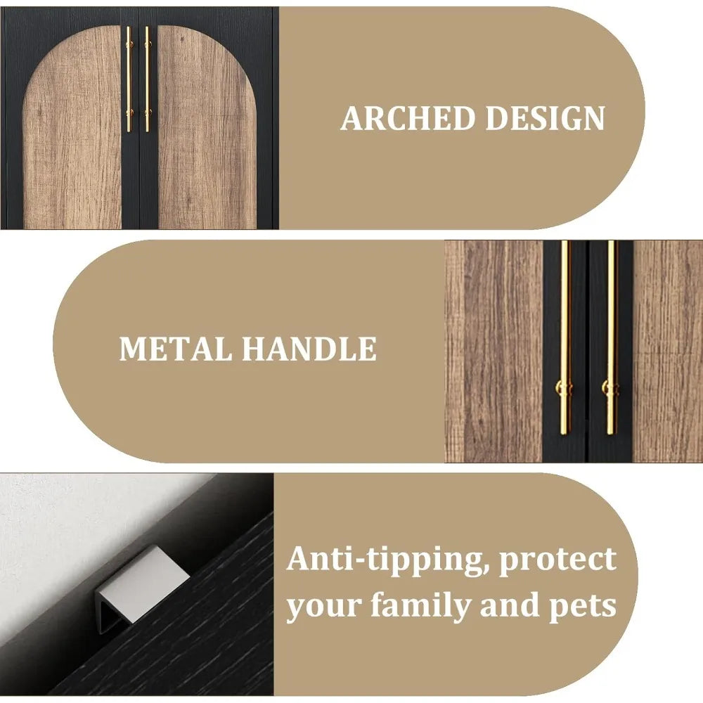 - Vintage styling, modern strength – arched paneled doors with powder-coated metal handles sit on a sturdy wood-MDF frame tested to 120 lb top weight; anti-tip kit included to protect family and pets.