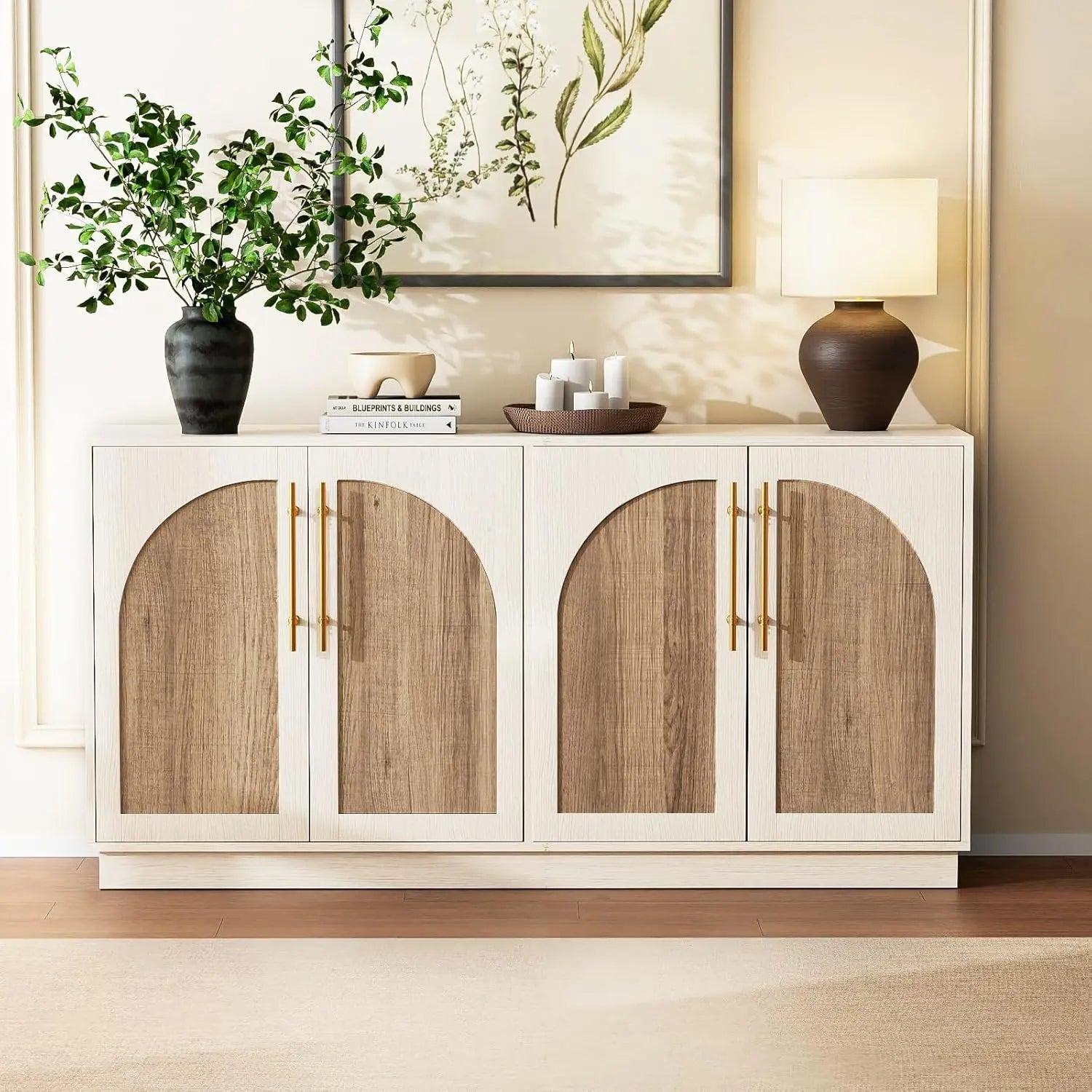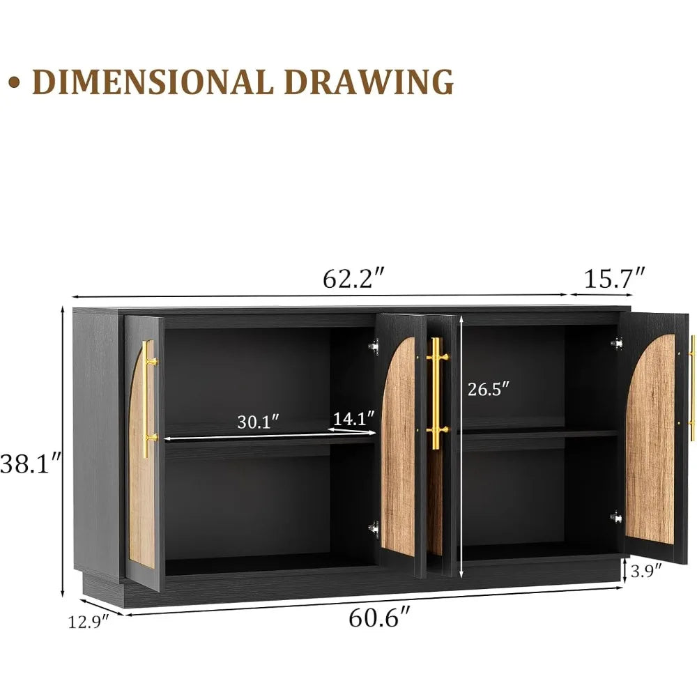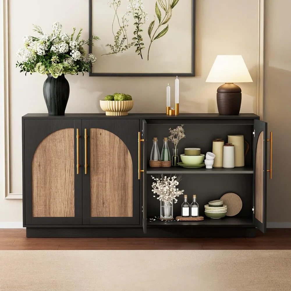 - Two adjustable shelves inside the upper & lower compartments let you customize height for tall pitchers or stacked plates, keeping your sideboard flexible as needs change.