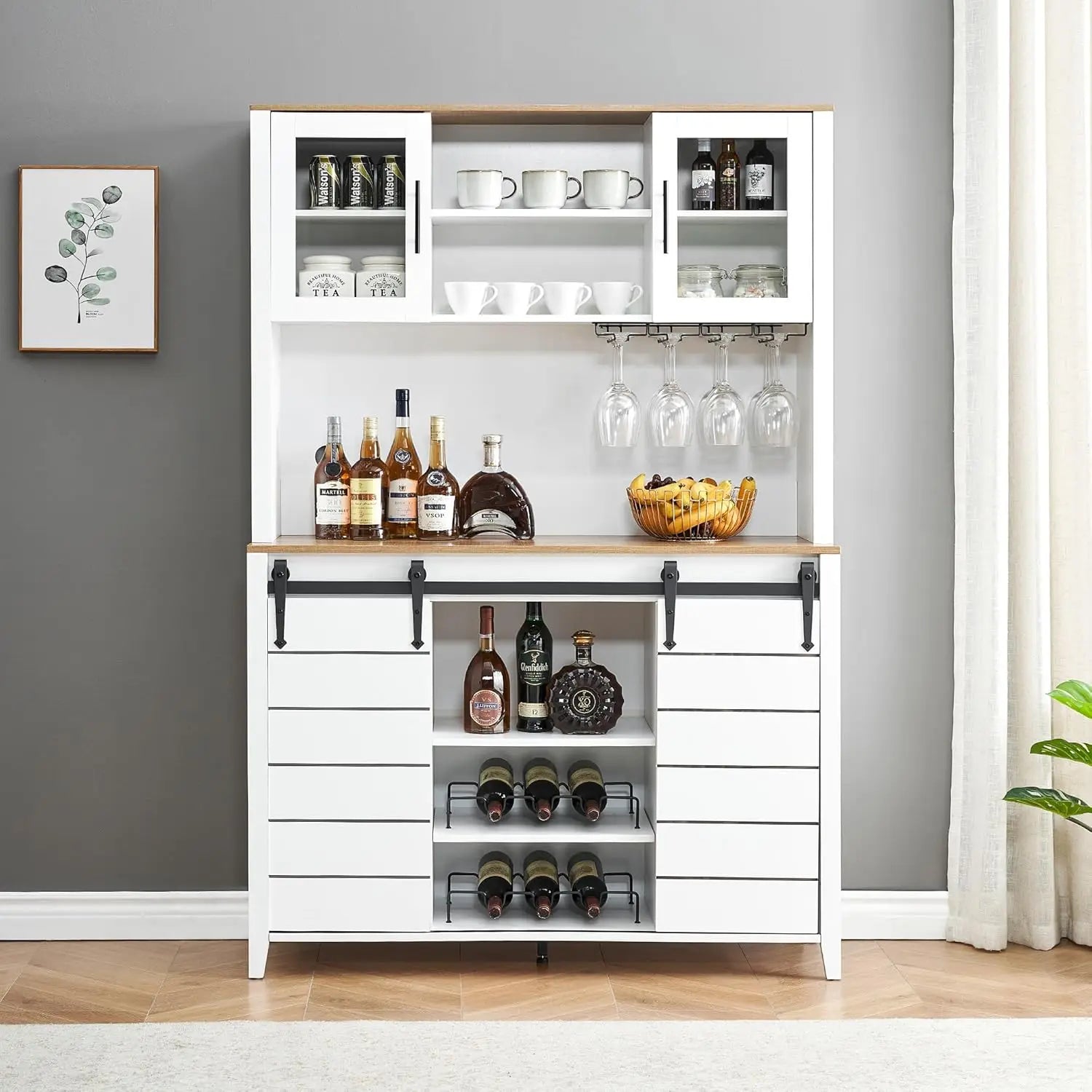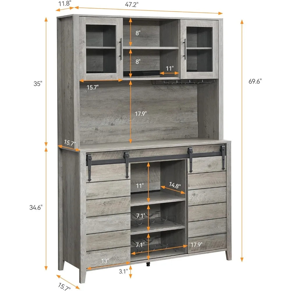 70'' Tall Farmhouse Coffee Bar Cabinet, Kitchen Hutch Storage with Sliding Barn Door, Tall Sideboard Buffet with Wine Rack