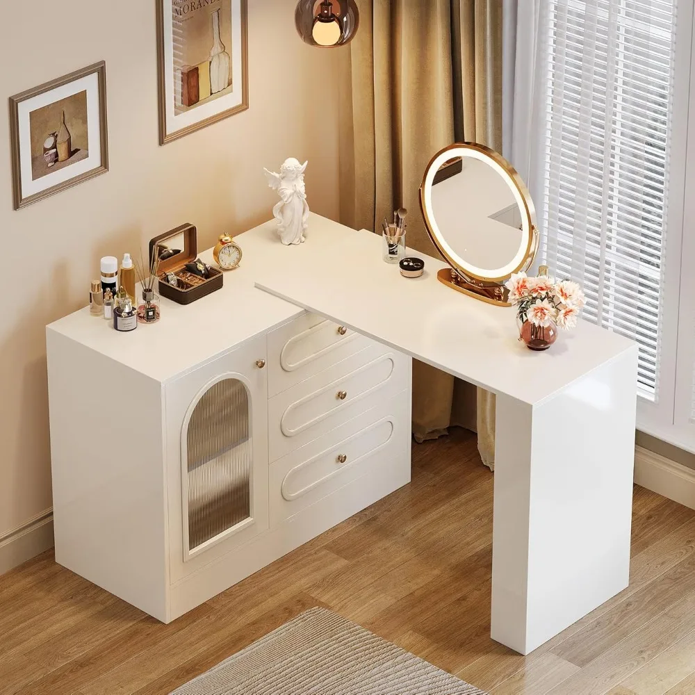 78" Modern L-Shaped Makeup Vanity Desk with 3 Drawers and Extendable Dressing Table