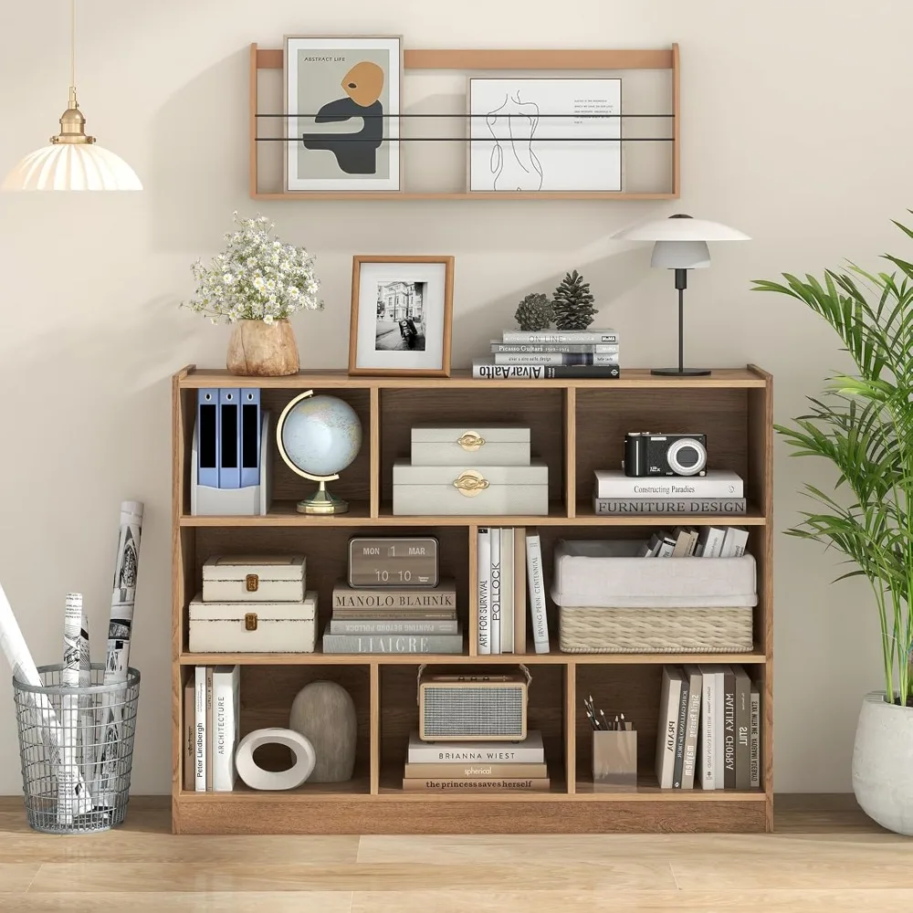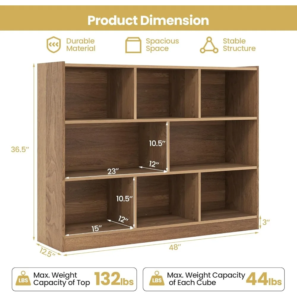 8-Cube Bookcase, Wood 3 Tier Open Storage Bookshelf, Modern Multipurpose Display Cabinet for Living Room, Study, Reading