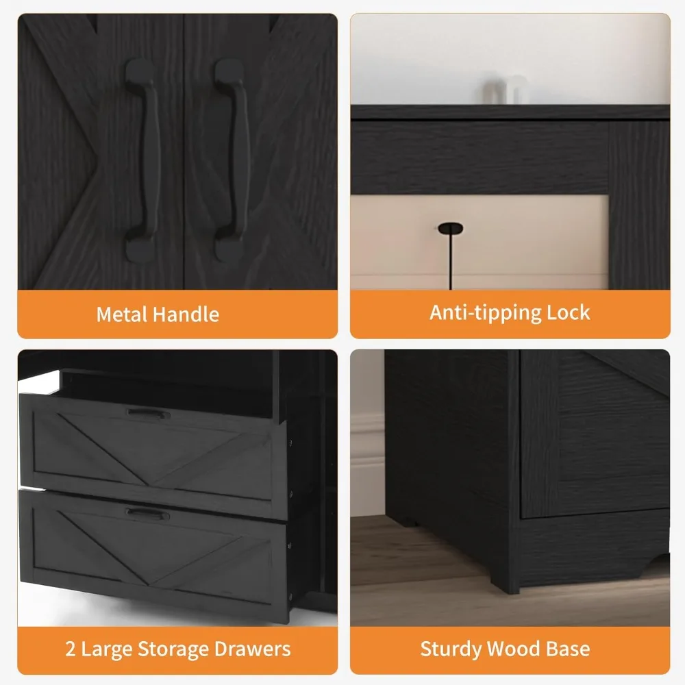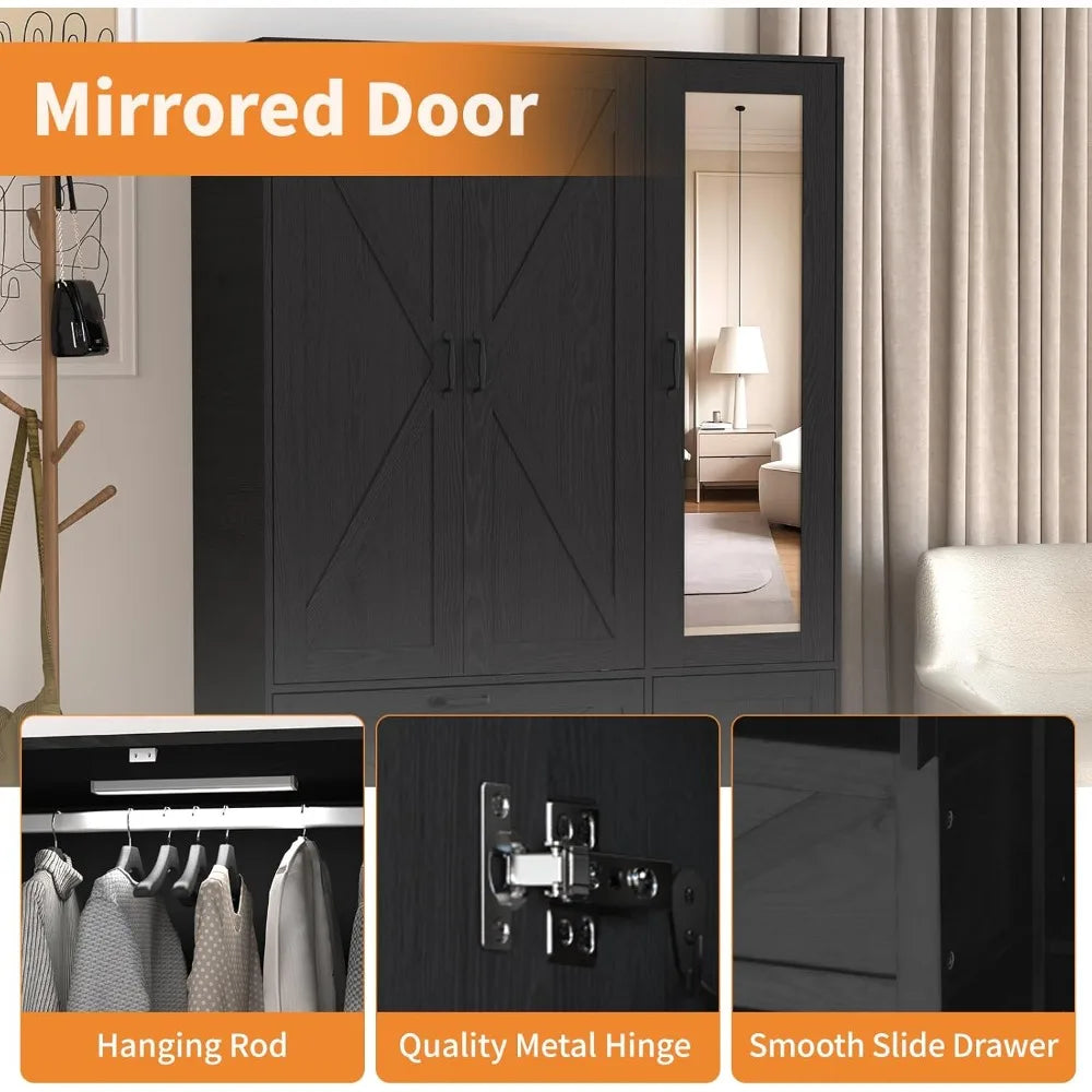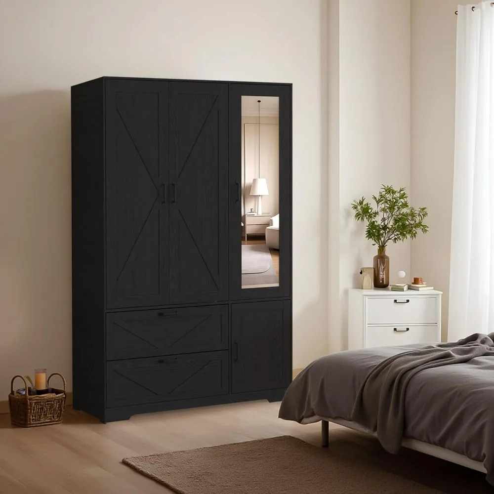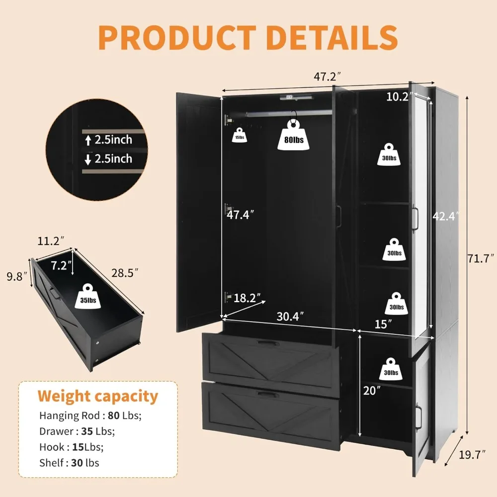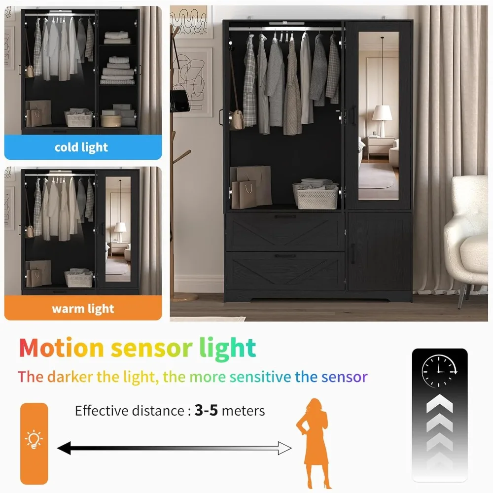 Special Feature: 3 Doors & 2 Drawers & Mirror, Anti-Tipping, Dustproof, LED Light & Adj