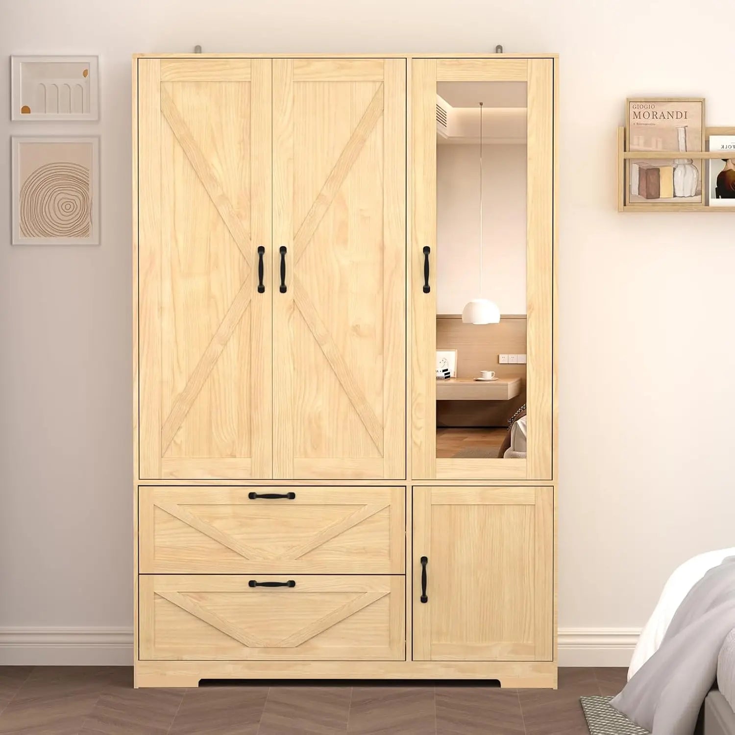 Armoire Wardrobe Closet, 72'' Wardrobe Cabinet with 2 Drawers & Mirror, 3 Doors Bedroom Clothes Closet with Hanging Rod