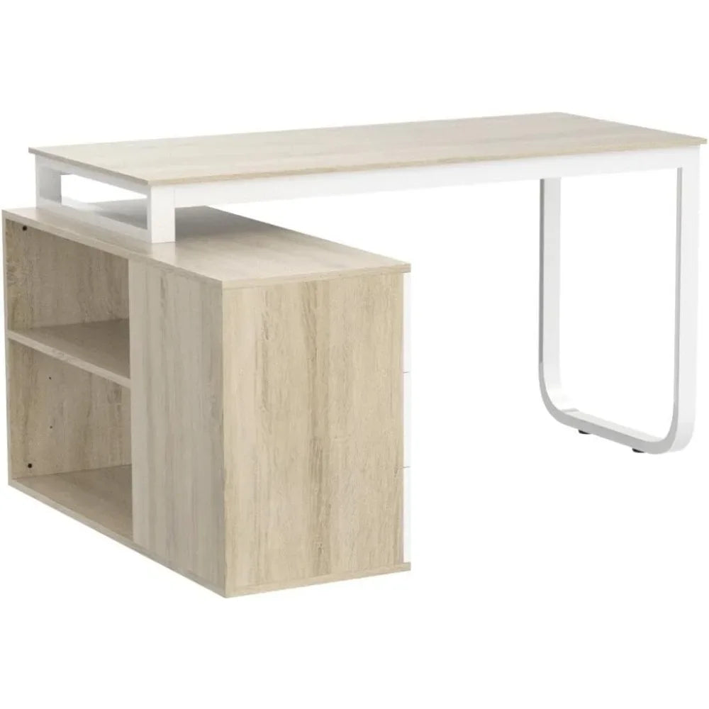Computer Desk Corner Desk with 3 Drawers and 2 Shelves, 55 Inch Large L-Shaped Study Writing Table