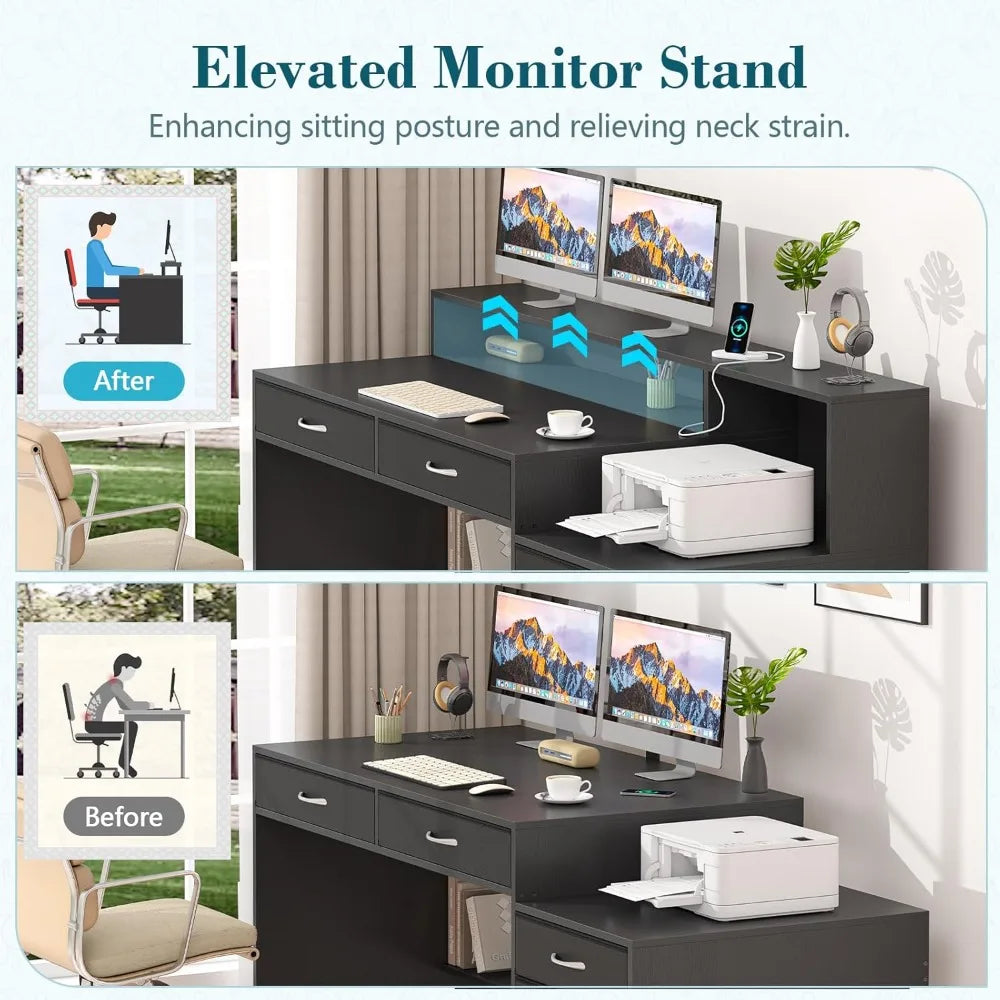 - 【Desk with Monitor Stand】This desk with storage space adopts an monitor stand design, which matches the working sight height and sitting posture, effectively reducing the pressure on the back and neck, allowing you to work without worrying too much about health problems