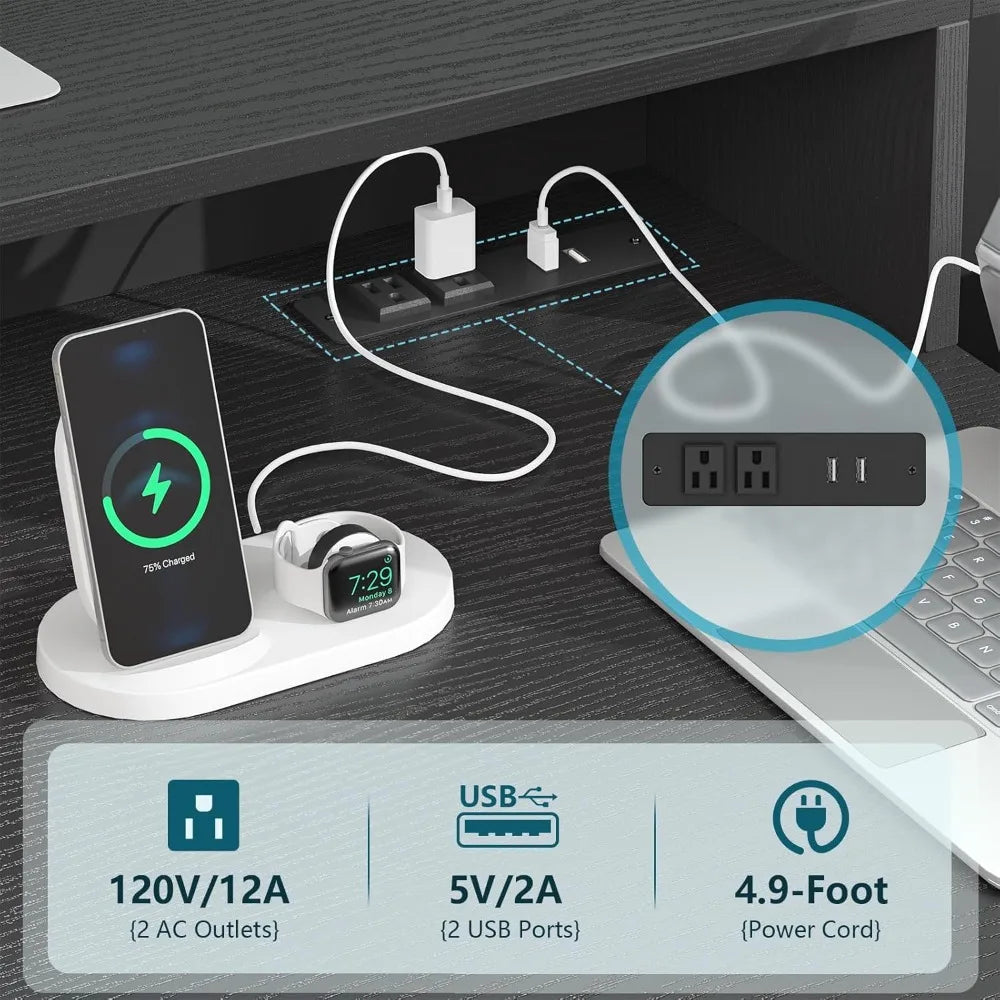 - 【Office Desk with Power Outlets】The office desk comes with a embedded USB and socket charging station with 2 power sockets and 2 USB charging ports built in. Provide additional power support for your computer, printer, scanner, mobile phone, tablet, etc