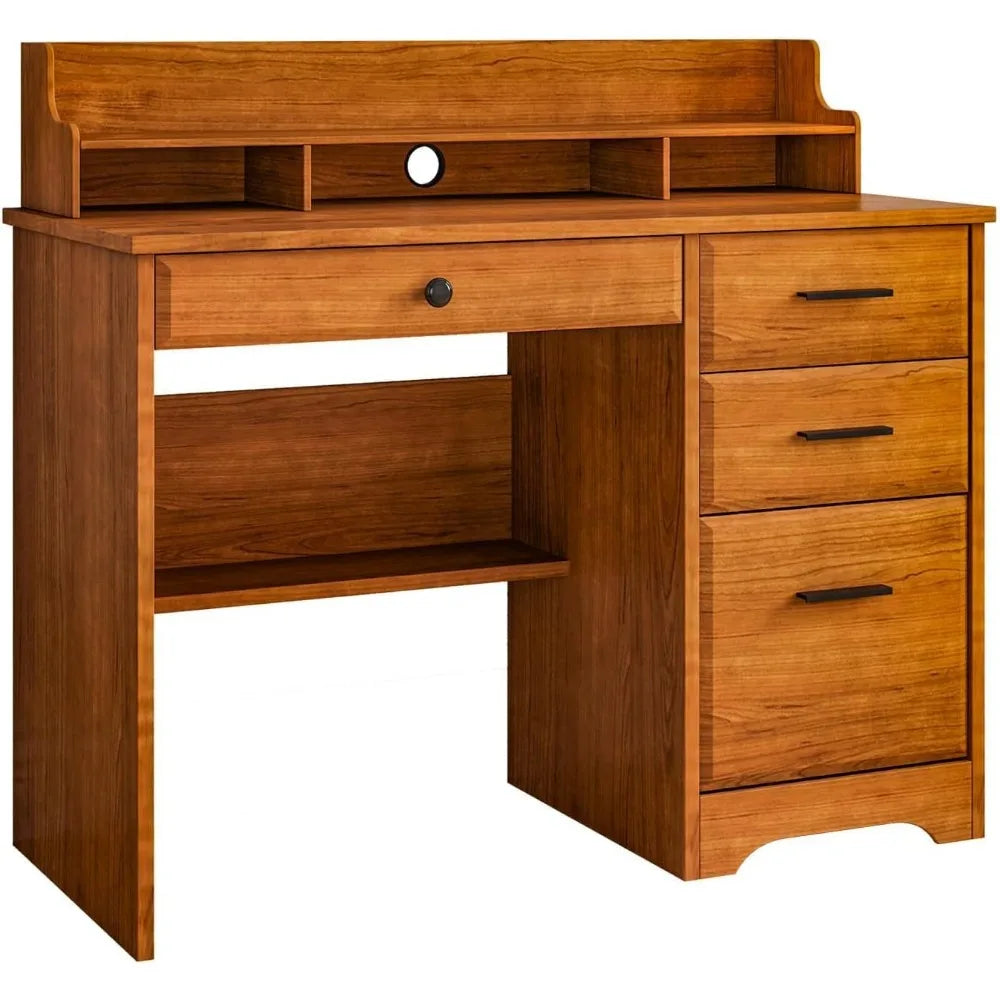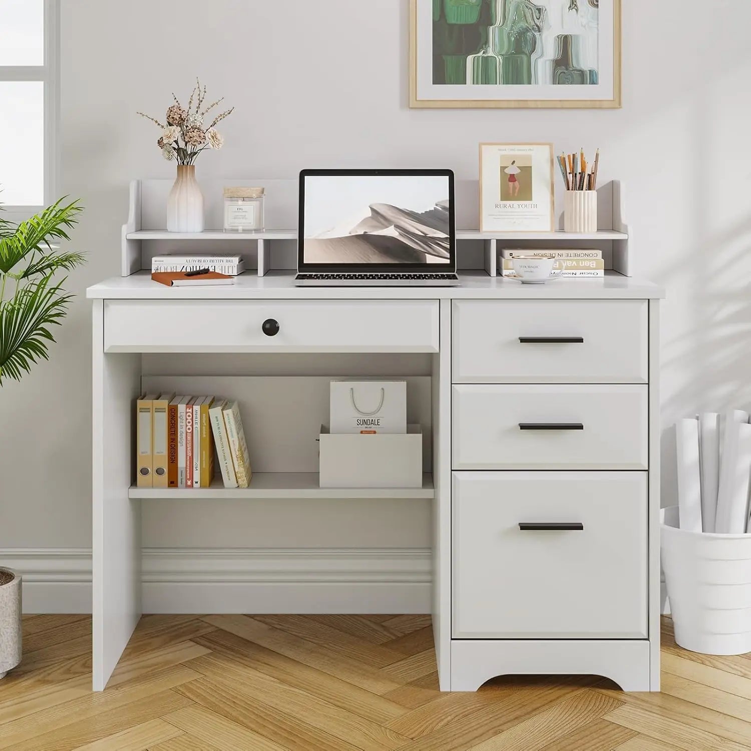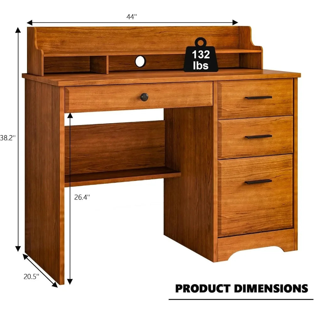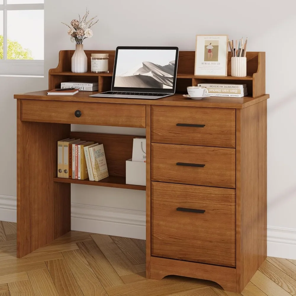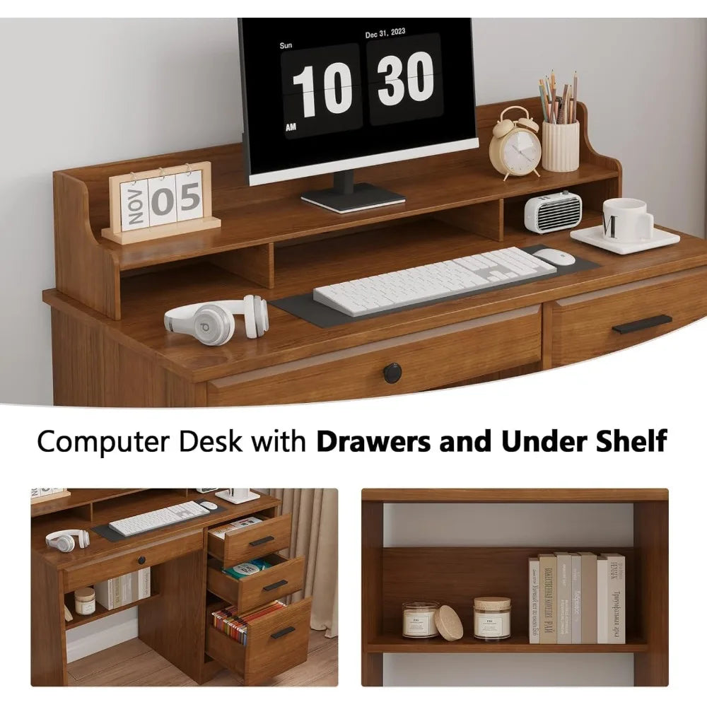 Computer Desk with Drawers for Small Spaces, Wood Desk with File Cabinet & Monitor Stand, Office Desks Writing Study Table