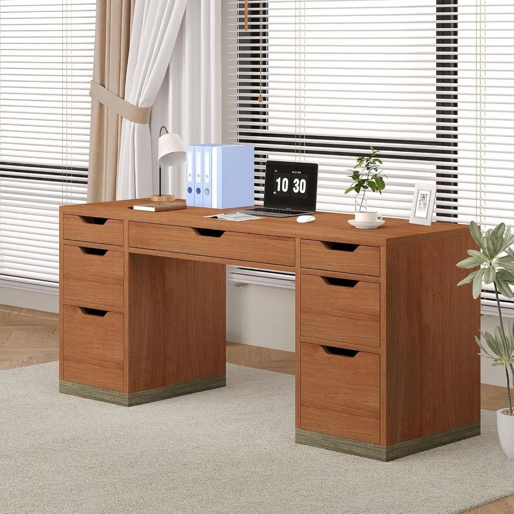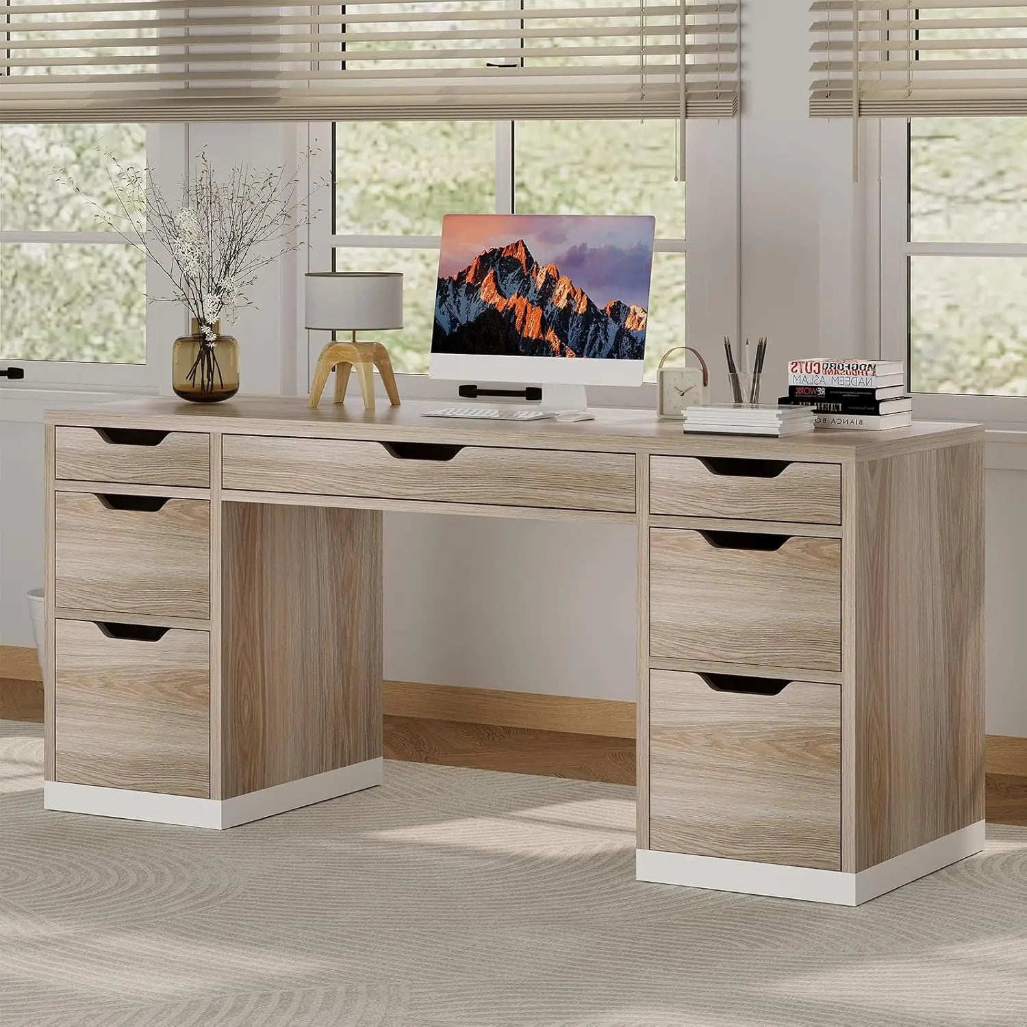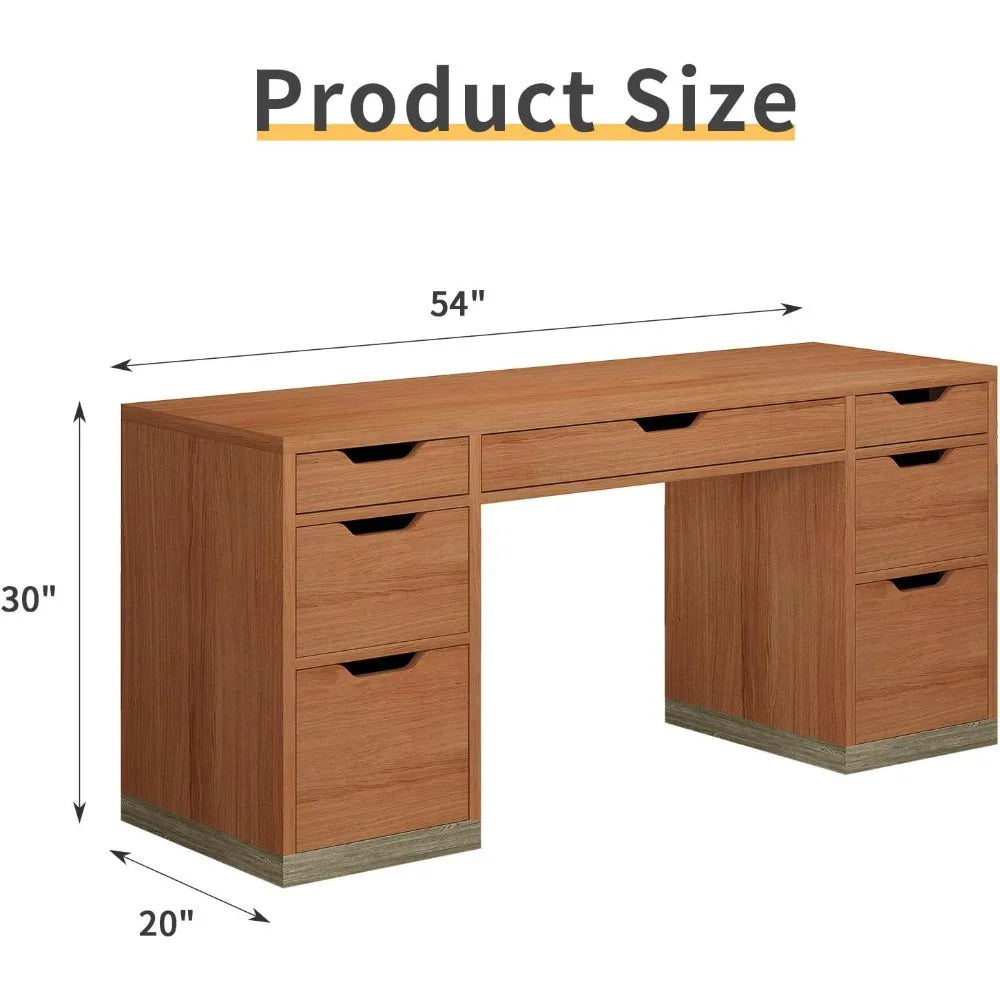 Executive Desk with Drawers, 54 Inch Computer Desk with 7 Drawers for Bedroom, Office Desk with File Cabinet for Work Study Writ