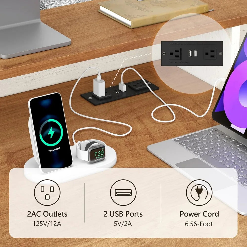 - 【Spacious & Convenient Workspace】: This computer desk with drawers has a 65-inch wide desktop and built-in power strip. The desktop can accommodate your office necessities, including monitors, laptops, or other supplies. The office desk is equipped with 2 sockets and 2 USB ports, which is convenient for charging tablets, printers, or mobile phones