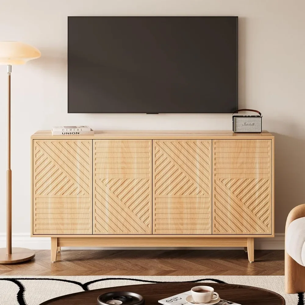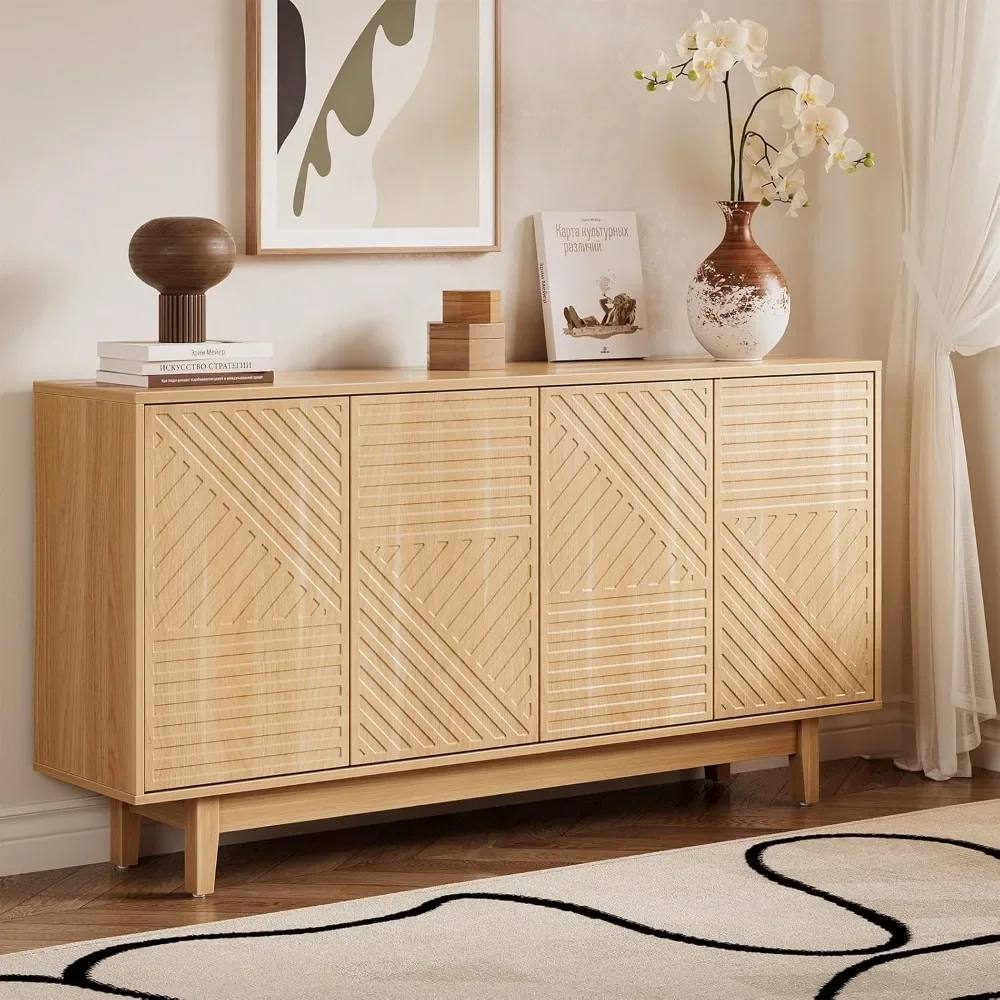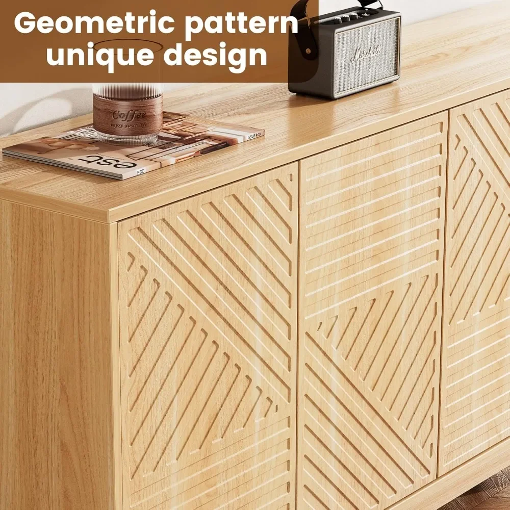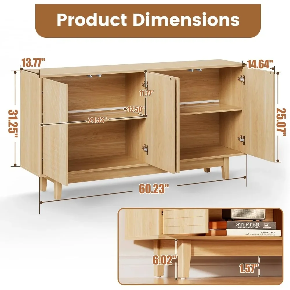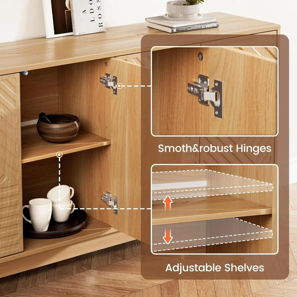 Fluted Sideboard Buffet Cabinet with Storage, Modern 60 inches Sideboard with 4 Doors, Large Wood Buffet Storage Cabinet Credenz