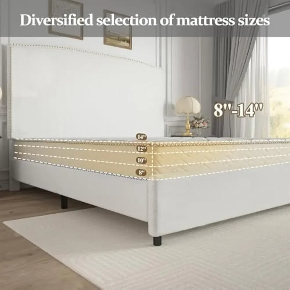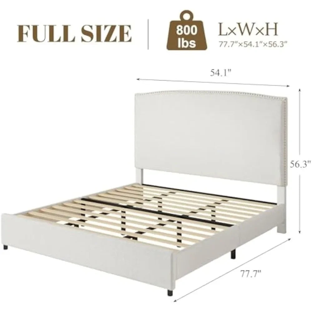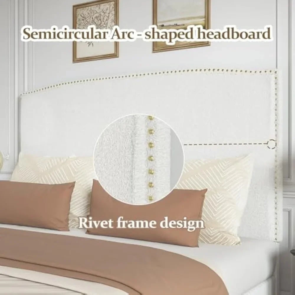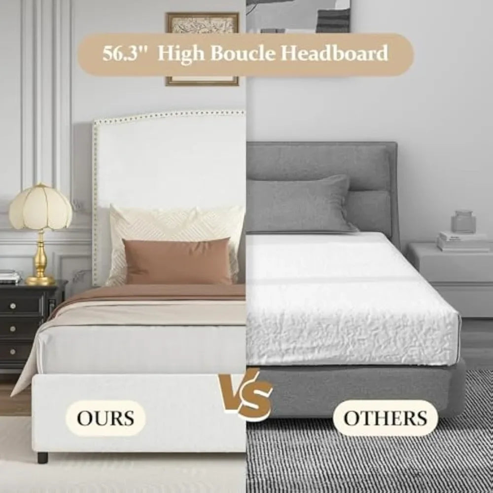 Full Size Upholstered Platform Bed Frame with 56" Headboard Soft Boucle Fabric Mid-Century Modern Design Full Bed Frame