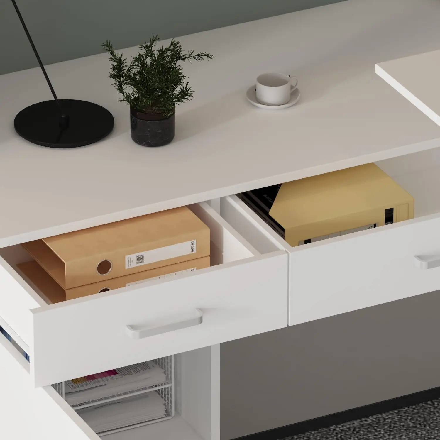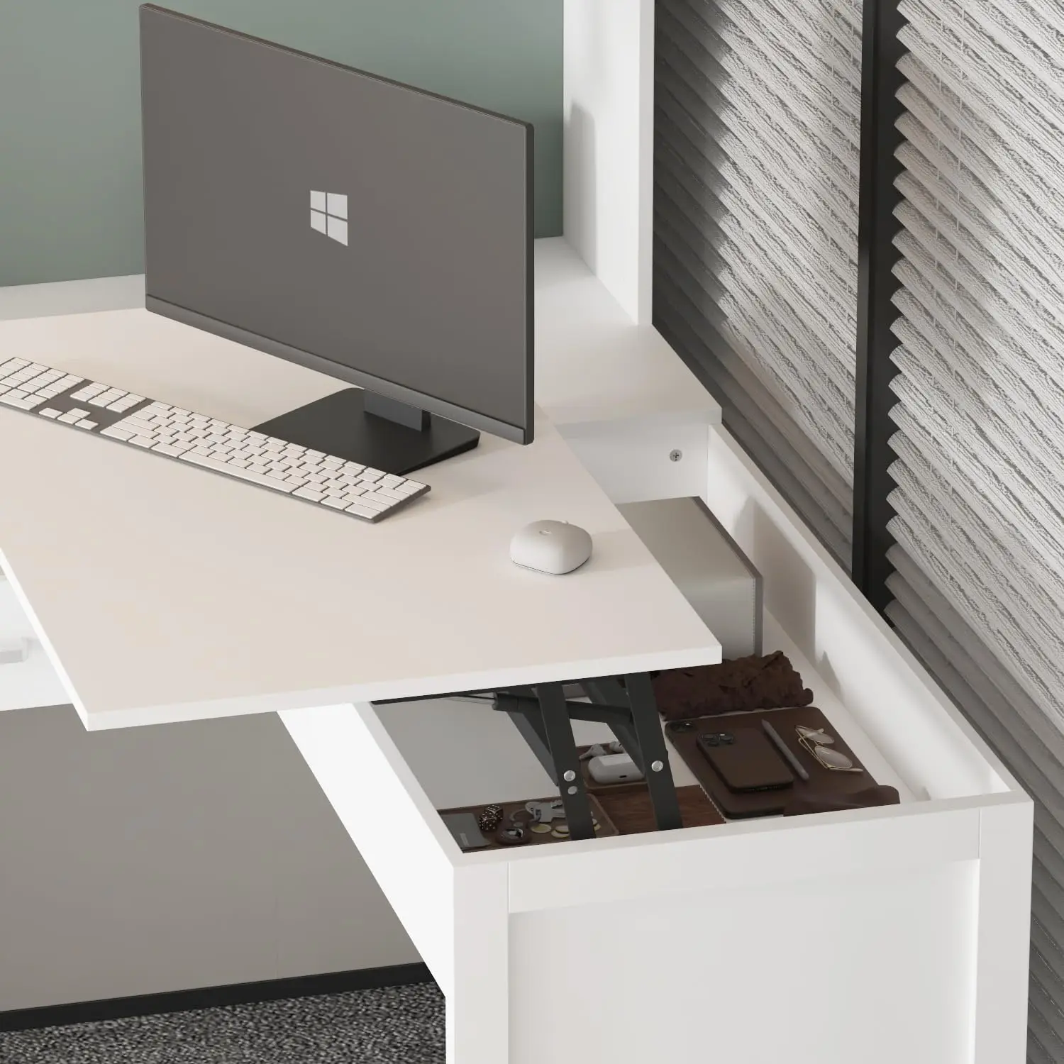 L-Shape Office Desk with Height Adjustable Top, Computer Desk with Drawers and Shelves,Corner for Home Office Living Room, White