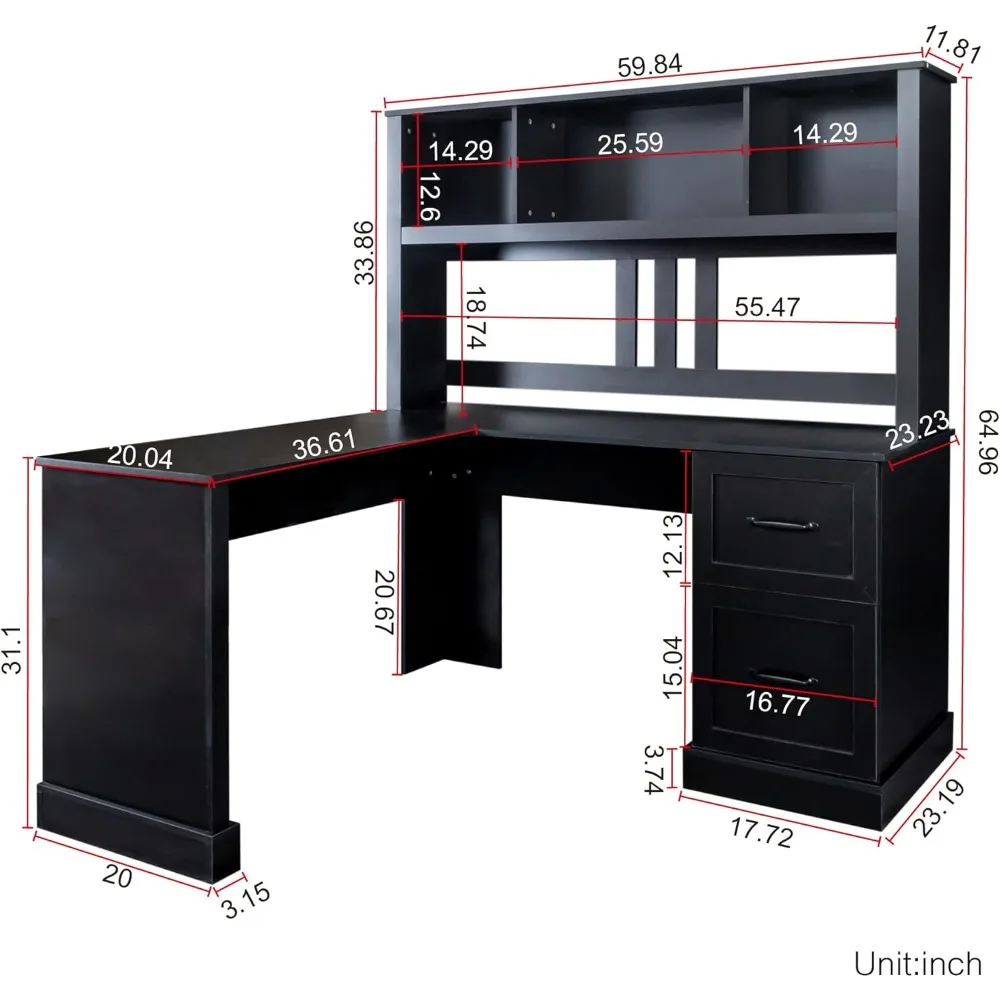L Shaped Desk,Computer Desk with Drawers,Bookshelf & Hutch,Modern Corner Desk,Home Office Desk,L-Shaped Study Table Writing Des