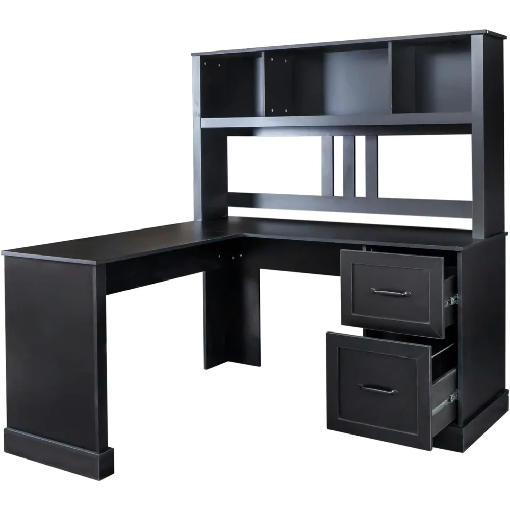 - Home Office Desk with Drawers, Bookshelf and Hutch: Coming with 2-tier open shelf and 2 large drawer, with powerful storage space. This computer desk is economic, meets different storage need, makes your office neat and tidy