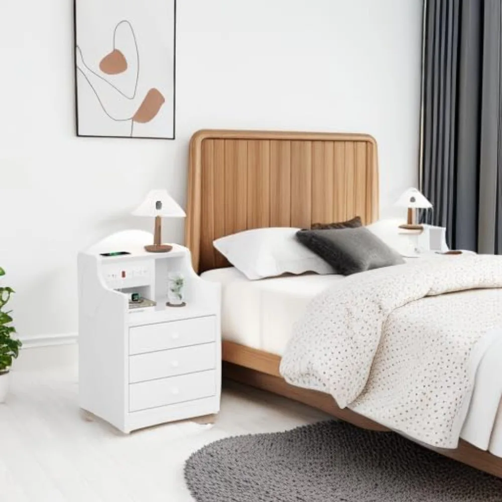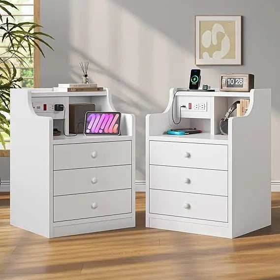- NIGHT STAND WITH CHARGING STATION:2 Standard Plug Outlets & 2 USB Ports port allows you to charge mobile devices such as cell phone, tablet etc.The charging station also includes a on-off switch,which strengthens the security.