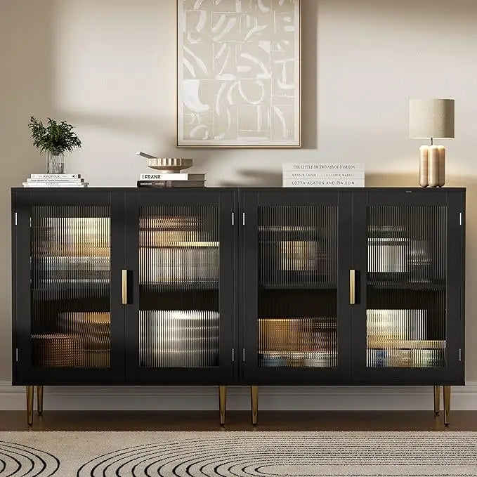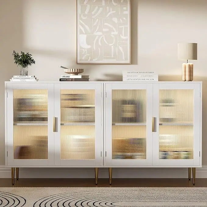 - 【Ample Storage】- This buffet cabinet features two fluted acrylic doors, offering ample storage space while providing a display function. With its dimensions measuring 31.5"W x 15.7"D x 33.5"H.