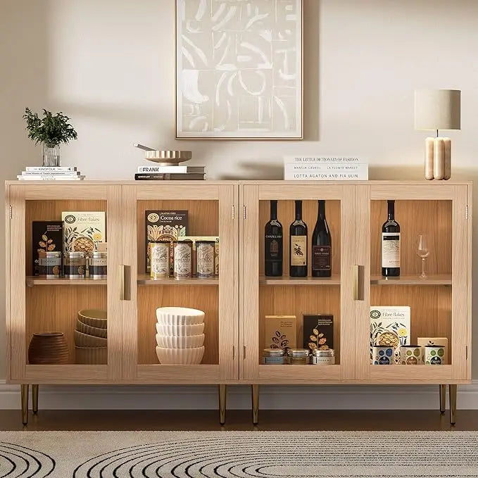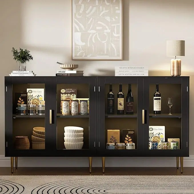 - 【Durable & Stable Construction】- Equipped with magnetic devices for easy opening and closing, this buffet cabinet features durable hinges designed for long-term use. Additionally, metal cabinet anchors ensure stability and safety, preventing tipping over. Crafted from CARB/EPA certified sturdy wood, it offers reliable stability and durability to withstand everyday use.