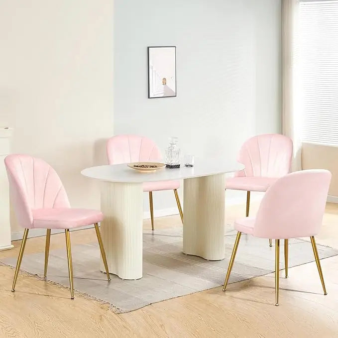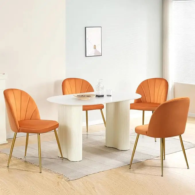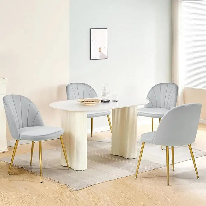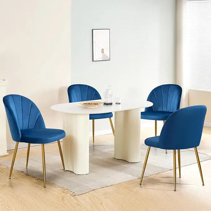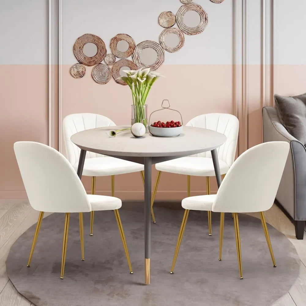 Velvet Dining Chairs Set of 4, Mid-Century Modern Upholstered Kitchen Chair with Metal Gold Legs, Elegant Accent Chairs w/Luxury