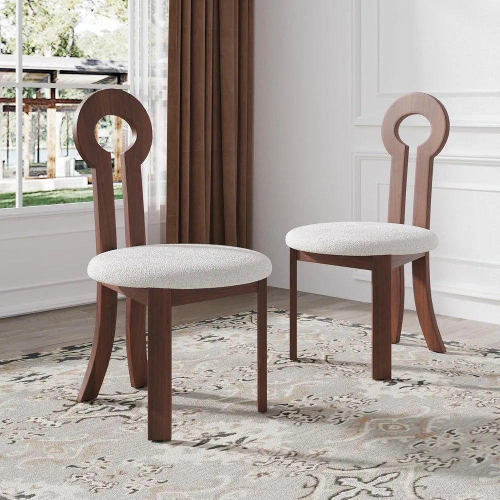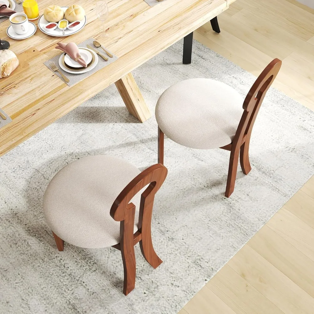 Wooden Dining Chairs Set of 6 Upholstered Kitchen & Dining Room Sherpa Chairs, Mid Century Modern Dining Chairs with Walnut Legs