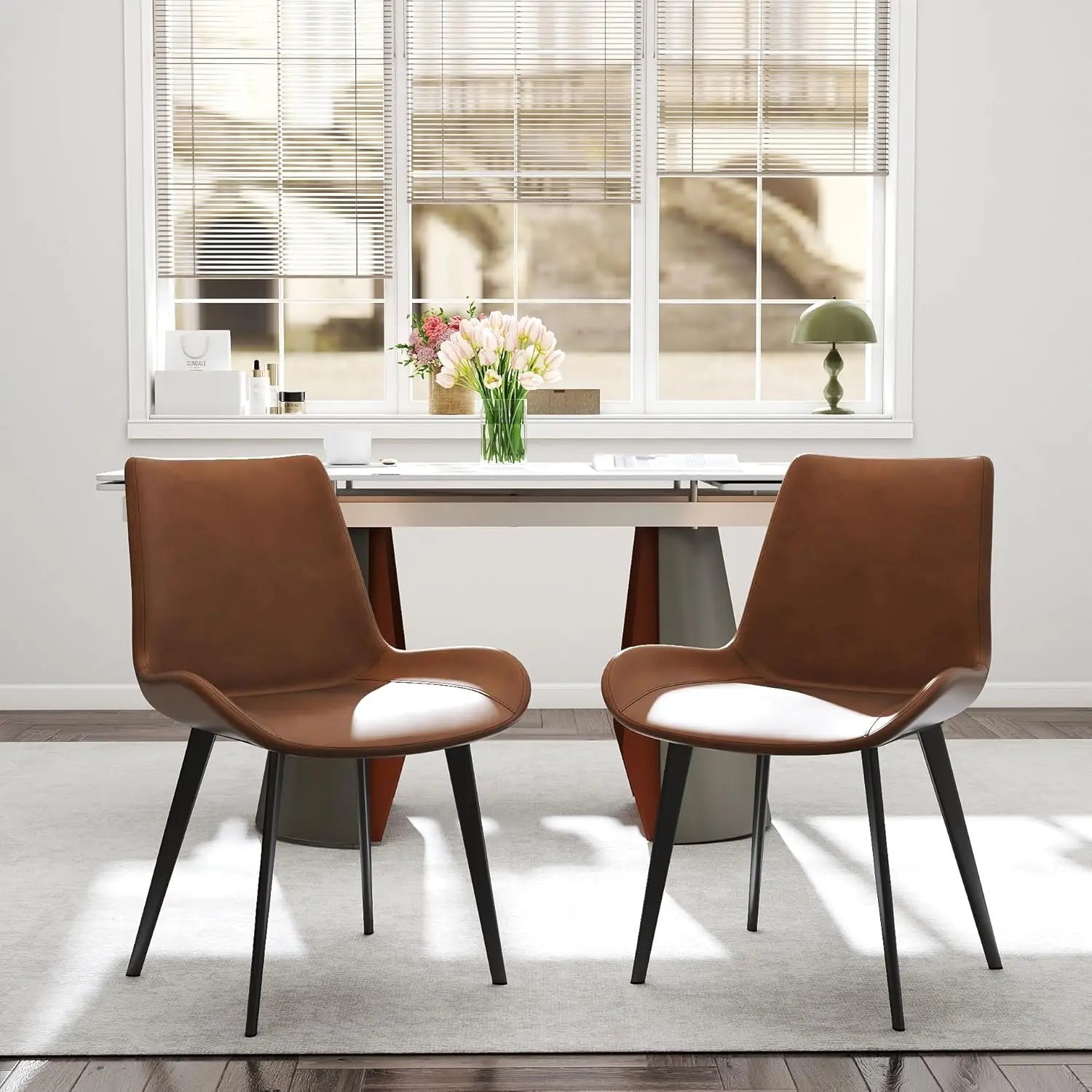 - Comfortable Dining Chairs: The upholstery on this modern dining chair set is covered with water-resistant PU leather, filled with high-density foam, and supported by a sturdy powder-coated metal frame, providing a soft and comfortable seating experience. Our chair is water-resistant and easy to clean by wiping it with a damp cloth.